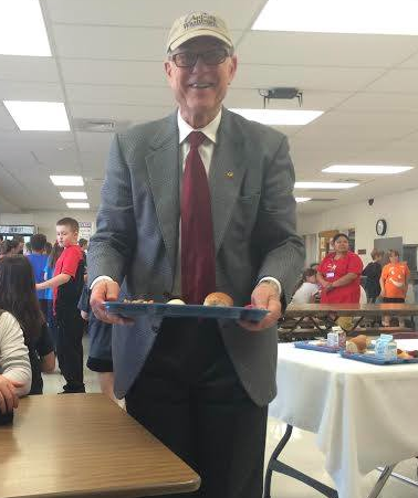 Sen. Roberts in the lunchroom at  Pauline Central Primary School on Tuesday